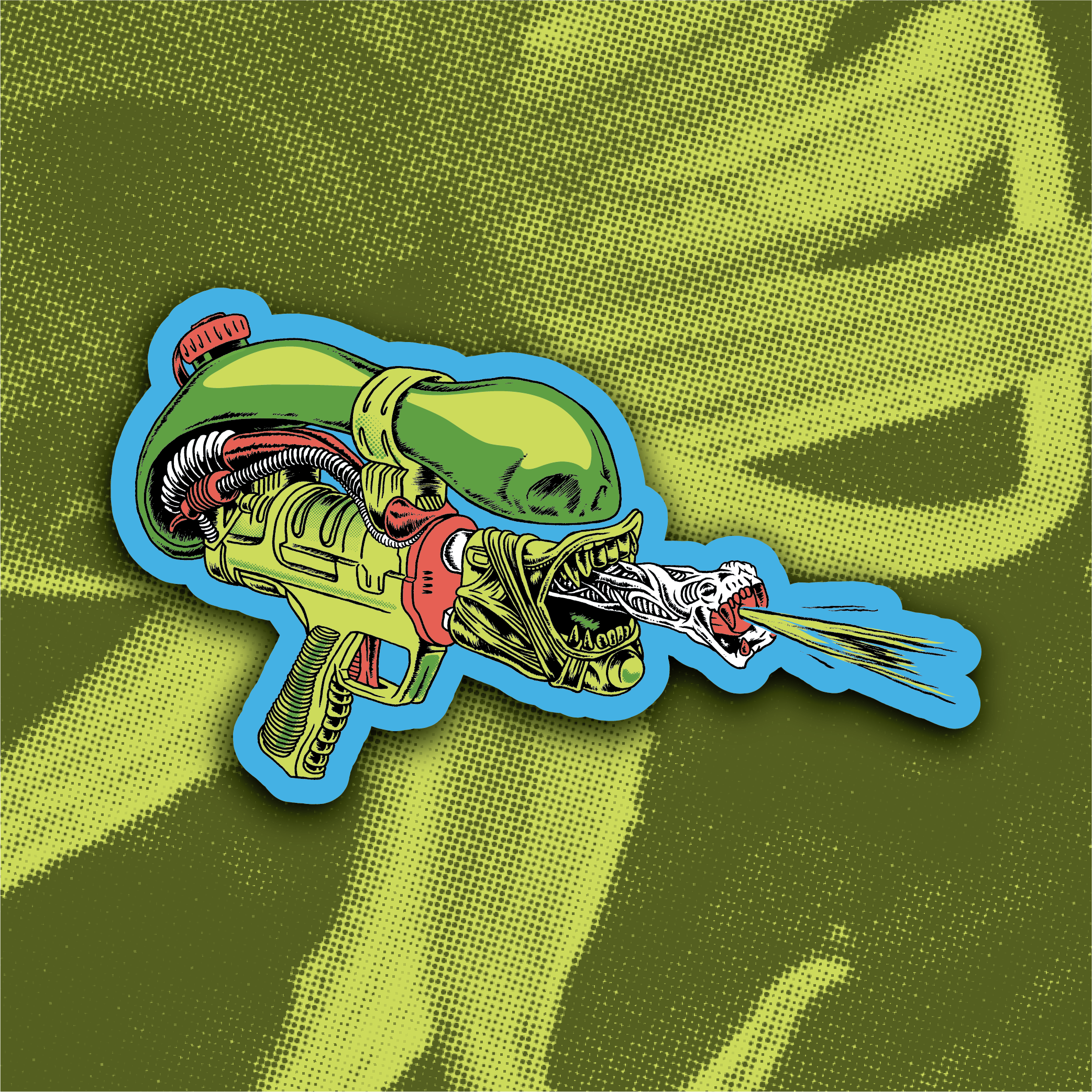 In space no one can hear you squirt! I asked the old cronies upstairs at Garracula Studios HQ if we could possibly make a more 80s/90s throwback sticker and they said no. Apparently we've hit the ceiling with the Xenosoaker sticker, so we hope you feel nostalgic when you slap one on your Wagon Queen Family Truckster station wagon